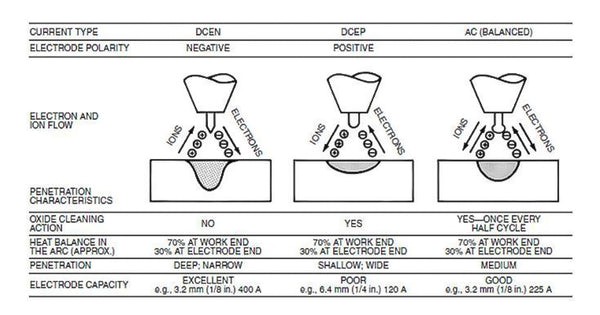 Tabel Perbandingan karakteristik polaritas DCEN, DCEP, dan AC
